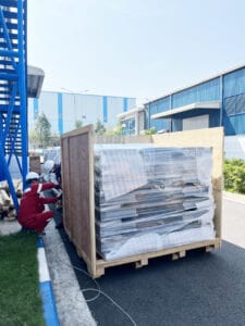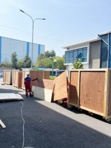 - Thùng gỗ chất lượng cao được thiết kế và đóng gói chuyên nghiệp để đảm bảo sự an toàn và bền vững cho máy móc trong suốt quá trình vận chuyển của công trình.